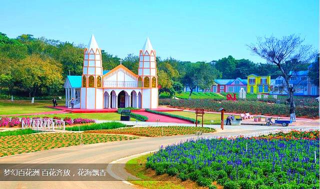 前往【梦幻百花洲】(门票已含)引进了我国乃至世界的名花异卉数百亩,以“鲜花的海洋、健康的乐园、爱的世界”为主题,建设了拥有近百万朵雍容华贵的“牡丹园”,近百万朵浪漫惊艳的“玫瑰园”,姹紫嫣红色彩各异的“花海世界”,彩蝶翩翩的“蝴蝶谷”,亦梦亦幻的“百花谷”以及工艺精湛,造型生动的“如意花门”、“荷兰风车”、“花卉大观”、小桥、花船等园景小品