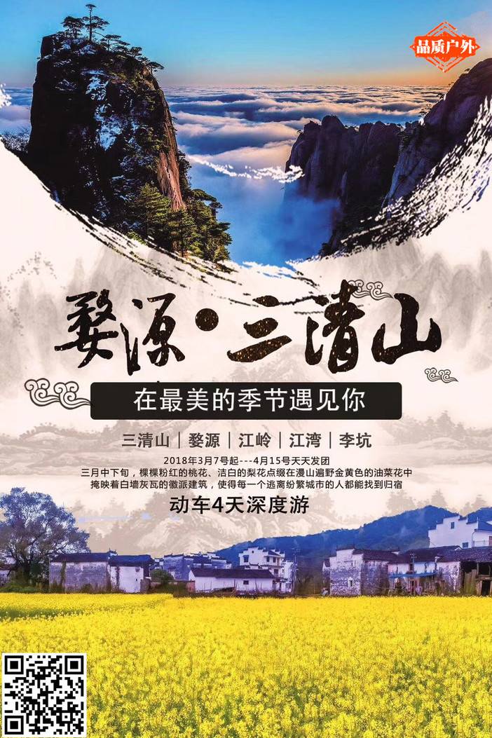 【赏花系列-婺源+三清山动车4天】3月7日起天天发团:在最美的季节遇见你—好色婺源•醉美三清山4天深度游(高铁往返)