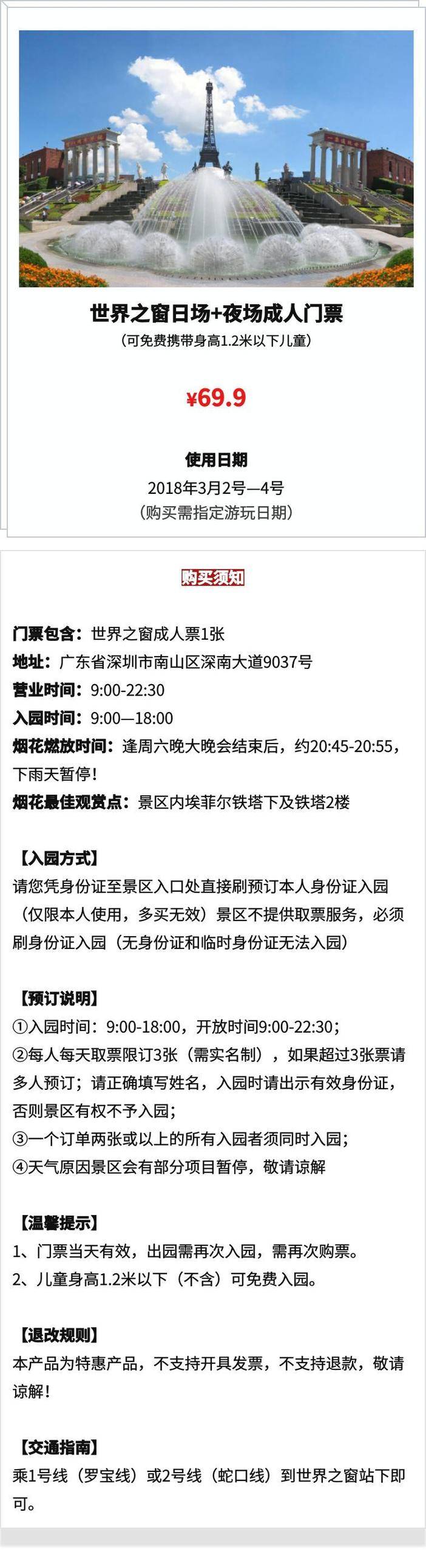 【深圳超强爆款】迎春钜惠来袭-69.9元抢·世界之窗全天通玩门票~快来带亲朋好友一起环游世界吧!