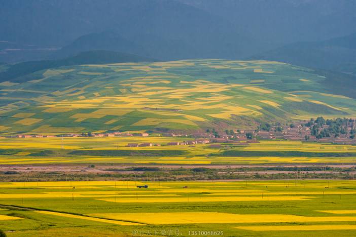 从西宁、穿越海拨3800米达板山隧道,到达门源。7月的门源,祁连山下一片金色的海洋,在高原上常见的蓝天白云和祁连雪山的衬托下,油菜花沿浩门河两岸成就了博大壮阔的特有奇观,一望无际的金黄显得异常斑斓,令人慨叹,象一幅巨型画卷,近百万亩的大色块简单构图具有十足的西部风味,铺天盖地的霸气给人丰富的遐想。