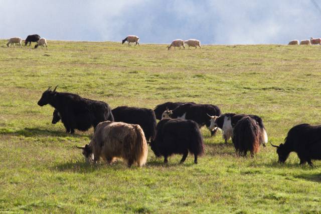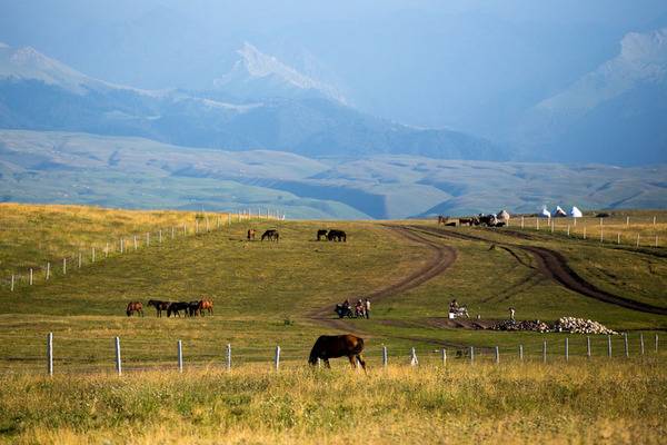 阿拉尔金草滩就在塔什库尔干县城边上,在石头城下,因那里有一个叫阿拉尔的乡村,故得名阿拉尔金草滩,因有塔什库尔干河流经此处,这里水草丰美,牛羊遍地,和远处的雪山白云蓝天交融在一起十分漂亮。我们去的时候夕阳夕照,碧绿的草滩一片金色,远处牧人白色的毡房,羊群都沐浴在夕阳下,阿拉尔金草滩由此得名