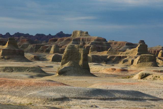 南八仙雅丹:柴达木的雅丹,是7500万年前盐和沙凝结地壳被西风侵蚀雕塑而成。它们广布于柴达木西北部,诗意盎然,别具一格。这里的雅丹林总面积约2.1万平方公里,平均海拔3260米,是迄今国内发现最大的风蚀土林群。