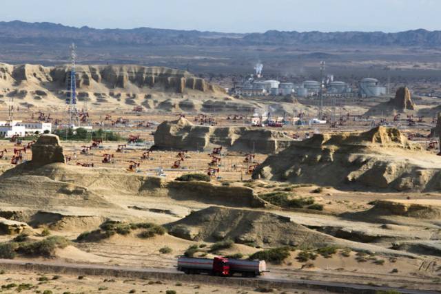 花土沟北面还有一座油砂山。强烈的地壳运动,造成地下油层沿着断裂处外溢,从而在这条昆仑余脉的地面上形成20多平方公里的裸露油层地貌。到了油砂山,犹如亲眼看见一本石油形成的教科书,使人对石油的生成有了直观的了解:这里有古城墙一般的山壁,有雨水冲刷形成的“泥瀑”,还有形态各异的各种动物“泥塑”:有千年守望的石龟,也有万里奔腾的骏马……