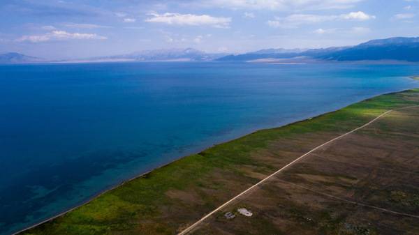 东台吉乃尔湖,与察尔汗盐湖差不多,是高浓度盐湖,所不同的是由于它含铜量较高,湖水呈现“鲜绿”色;也同样有湖面结晶。可以想象“鲜绿”色的水面上开着各式各样“白花”的画面! 途经西台吉乃尔湖。湖水呈绿色,是咸水湖。