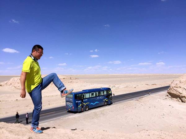 7点起床,7点半准时出发,沿连霍高速,车上欣赏茫茫戈壁公路,经过甘肃新疆界,下午5点左右新疆鄯善县的库姆塔格沙漠风景名胜区,位于新疆鄯善老城南端,与老城东环路南段相连,全称为“鄯善县库姆塔格沙漠风景名胜区”(简称鄯善库姆塔格沙漠),面积1880平方公里,是世界上少有的与城市零距离接触的沙漠,也是浓缩了世界各大沙漠典型景观的博物馆 。风沙地貌、景观类型齐全。沙漠地形地貌有沙窝地、蜂窝状沙地、平沙地、波状沙丘地、鱼鳞纹沙坡地、沙漠戈壁混合地等。沙丘轮廓清晰、层次分明;丘脊线平滑流畅,迎风面沙坡似水,背风坡流沙如泻。站在大漠深处沙山之巅,可静观大漠日出的绚丽,目睹夕阳染沙的缤纷,赞叹“大漠孤烟直,长河落日圆”的壮景。 拍沙漠壮观日落!晚上夜市FB,品尝民族小吃!