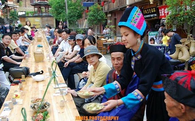 清晨:推开窗户欣赏晨雾,或农家的炊烟笼罩的原始苗寨;山坡上吊脚楼依山而建,层层叠叠,错落有致,山下是整齐的农田,形成一幅美丽的乡村图画;这梦幻般的晨景让你还沉醉在苗家的米酒中;苗家姑娘的歌声还在你脑海里回响;一切工作和世俗的琐事仿佛都离你而去;此时的心情像这山间的空气一样的清澈;这分宁静而质朴的味道真是难以取舍,这一切都会让你不枉此行