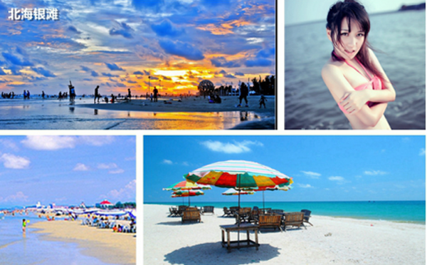 【北海银滩】面积超过大连、烟台、青岛、厦门和北戴河海滨浴场沙滩的总和。沙滩均由石英砂堆积而成,在阳光的照射下,洁白、细腻的沙滩会泛出银光,故称银滩,北海银滩以其“滩长平、沙细白、水温净、浪柔软、无鲨鱼”等特点,而被称为“中国第一滩”。广西则以“北有桂林山水,南有北海银滩”而自豪。