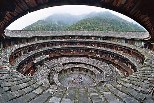 【怀远楼】 建于1905-1909年,是目前建筑工艺最精美、保护最好的双环圆形土楼。楼高四层13米,直径38米,每层34间,共136间,为简氏家族所建。怀远楼最引人注目之处在于内院核心位置的祖堂,也就是家族子弟读书的地方“斯是室”。“斯是室”精巧秀气,上下堂建筑占地190平方米,室内雕梁画栋,古朴天然,书卷气浓。