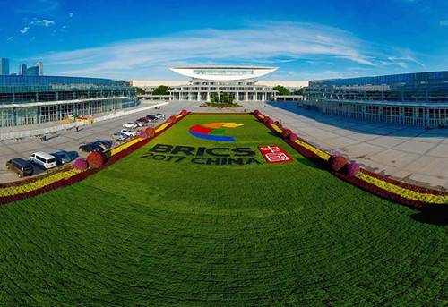 【金砖会址】外景"金砖五国"(BRICS)引用了巴西、俄罗斯、印度、中国和南非的英文首字母,由于该词与英文中的砖(Brick)类似,因此被称为"金砖五国"。