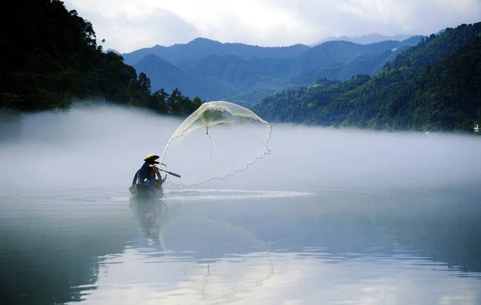 7:30开始有渔民撒网。(户外驴友摄影发烧友的最佳选择地)