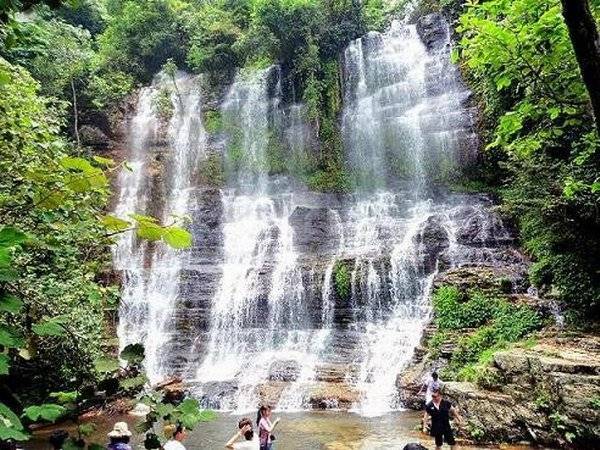 之后乘车前往游览风景如画、有着“中国第一彩溪、桂林最美瀑布”美誉的旅游观景胜地【红溪森林瀑布群】:(约90分钟)经过三年精心打造,投资过亿,其瀑布水量及森林覆盖率均为桂林第一;充分发挥溪水品质优势,以自然生态与水文化为依托,以观赏彩溪天瀑及古藤怪树,奇花异草,青苔峭壁、戏水纳凉为游览主题,以自然生态、休闲养生、天然氧吧为功能内涵,突出有林有水、林水相依的自然生态景象,为宾客提供“以水为魂、以人为本、自然美景、休闲养生”的度假游览观景好去处。