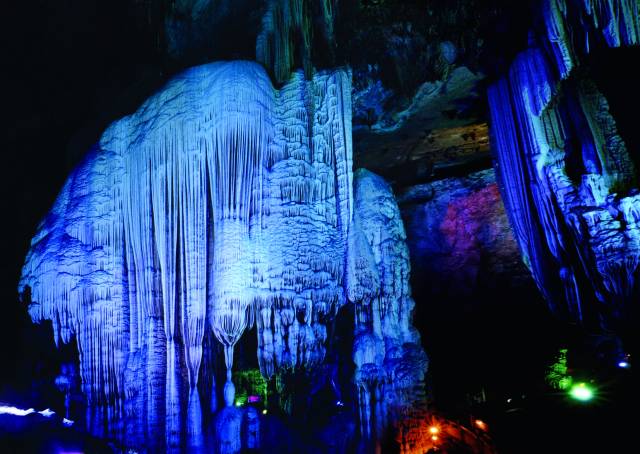 此时最佳的安排是去游览一个恒温22℃的桂林最美溶洞—4A级景区【银子岩】(游览不少于60分钟),途中路经十里画廊,导游会一一介绍唐僧打坐、骆驼过江、月亮山、猩猩接吻等自然奇景。约30分钟车程到达银子岩,洞内的钟乳石,宛如夜空银河倾泻而下,闪闪发光的似银子、若钻石、似水晶,整个岩洞就象是用珍珠、玛瑙、黄金、钻石镶嵌而成的地下宫殿一样,色彩斑斓、金碧辉煌,因此得来“游了银子岩,一世不缺钱”一说。