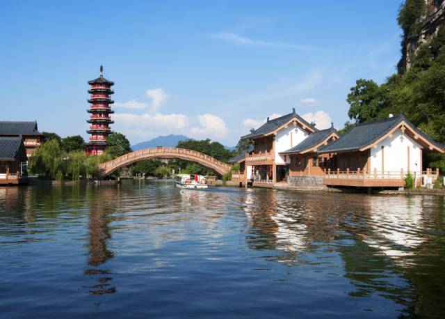 乘车返回桂林,前往游览【木龙湖东盟园】(游览时间约60分钟)木龙湖是两江四湖中建筑最别具一格的一段湖面,山水环绕,它是在老城墙东门城的依托下,参照清明上河图等很多宋朝时期建筑改建而成。木龙湖的位置,在宋代是一排排的兵营,这个人工湖因为邻近木龙洞,故名木龙湖,湖上有塔,称木龙塔!