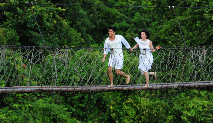 过江龙索桥飞跨两山之间,长达168米,悬空数十米,为海南第一铁索吊桥。《非2》中舒淇走过的索桥