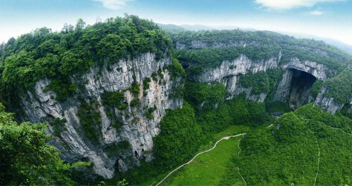 早餐后游览张艺谋2006年摄制的大片《满城尽带黄金甲》唯一外景地,07年入选世界自然遗产名录的【天坑.天生三硚景区】景区拥有世界上最大的天生硚群落,三座天然形成的石拱硚横跨在洋水河大峡谷幽深险峻的两个大天坑上,三座天然石硚相互映衬,构成一幅雄奇.壮丽 的图画.一峡.两坑.三硚.四洞.五泉形成景区独有的特色.