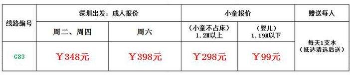 赠送每天1只矿泉水(到清远后送)