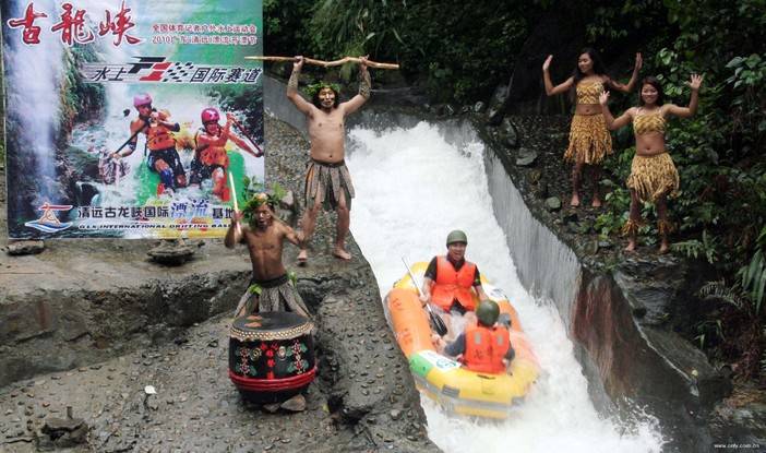 参加2007年国际漂流决赛赛场【古龙峡全程飞龙漂流】(全程漂)约一个半小时,全长5.2公里,落差达236米,共137处,创下了广东单项漂流长度最长、回旋最多、落差最大三项纪录,被誉为中国漂流的巅峰之作。