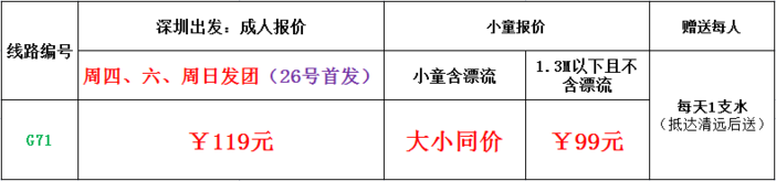 2、漂流如需要租保险柜及买漂流打水战的作战工具旅行社不含,请提前准备或当地购买.