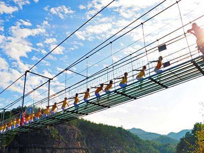 第二天:早餐—红不让—牛鱼嘴(惊魂玻璃桥+飞龙滑道:自费)—水晶弹野战+农家野炊—返程