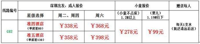 赠送每天1支矿泉水(到达清远后送)