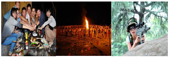 21:00燃起熊熊的篝火,跳起激情的舞蹈(脱衣舞、钢管舞、兔子舞、各种民族舞等等),唱起欢乐的歌曲,伴随着杀人、一个船长、美女与色狼、我爱你、皇帝、老实话大冒险等等户外活动经典游戏…今夜嗨不停!