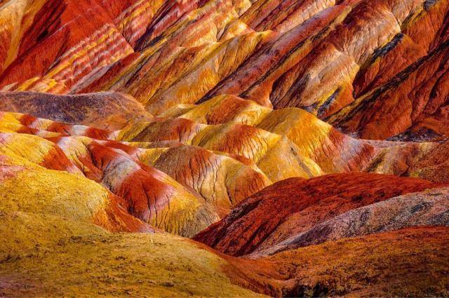 蜿蜒起伏的丹霞地貌连接成片,高仰低俯,色泽艳丽,在每个人的心中留下最绚丽的回忆。