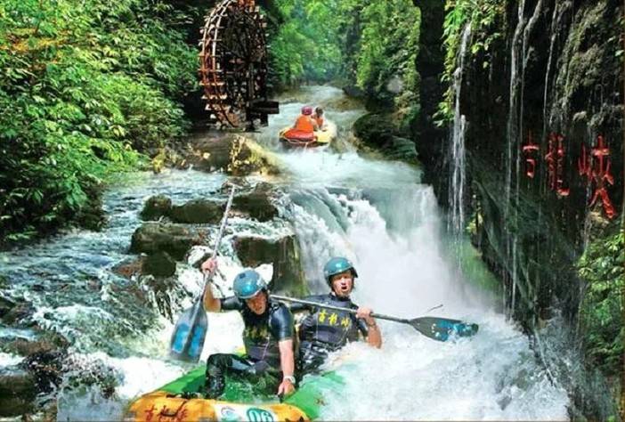 古龙峡漂流被誉为浪尖上的过山车,高差378米的天然峡谷赋予古龙峡漂流与众不同的特色,集瀑布、深潭、奇石、丛林、珍稀植物于一体,悬崖对峙、滩多水急, 自然景色之美令人为之惊叹。天然瀑布群及充裕的山泉水为漂流提供了充沛的水源,茂密的植被为游客遮挡了夏日火热的骄阳。