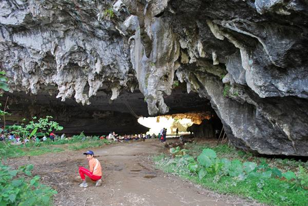 “洞天仙境”是一颇具特色的景点,一路上,平坦的公路,两边是平坦的田园。规划整齐的水田里,禾苗绿意盎然,颜色由深至浅铺向远方,一座奇特的大山就在眼前,通过写有“洞天仙境”的大门楼就进入到了停车场,再行数十步,有一明镜般的小湖映入眼帘清渐见底的湖水可见鱼在游动,湖两边停放着几只小船。洞口有一巨大的钟乳石向下垂吊,山洞口就像龙口,垂吊的钟乳石就是一条龙利,从藤修蔓垂的岩洞口荡桨而入,木桨击破水面的轻微声响惊出数十只燕子,在众多奇姿怪态的钟乳间穿掠,越发显出洞穴的幽奇。穿过一段狭窄的地方进入到洞内,视野豁然开朗,一个巨大的山洞有树木,绿草、野花,抬头仰望,又有一个天,这不是梦吧!洞中有天,洞天相连,洞中的天一长一短,酷似一个巨型的感叹号,让人叹为观止,细心观察那个长的还真似台湾岛的地理版图,真是让人惊叹自然造物的神奇。
