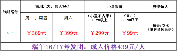 赠送每天1只矿泉水(到清远后送)
