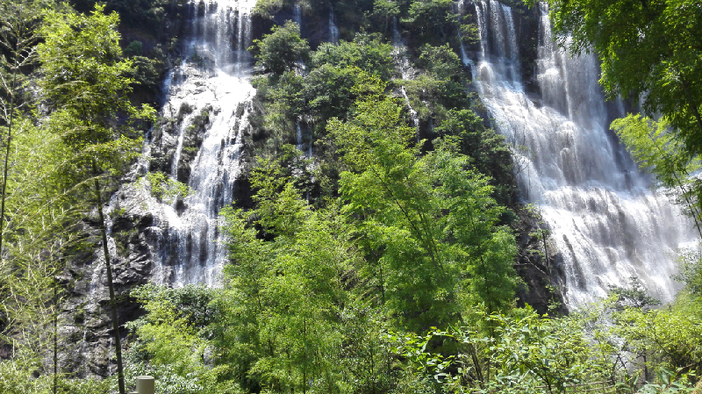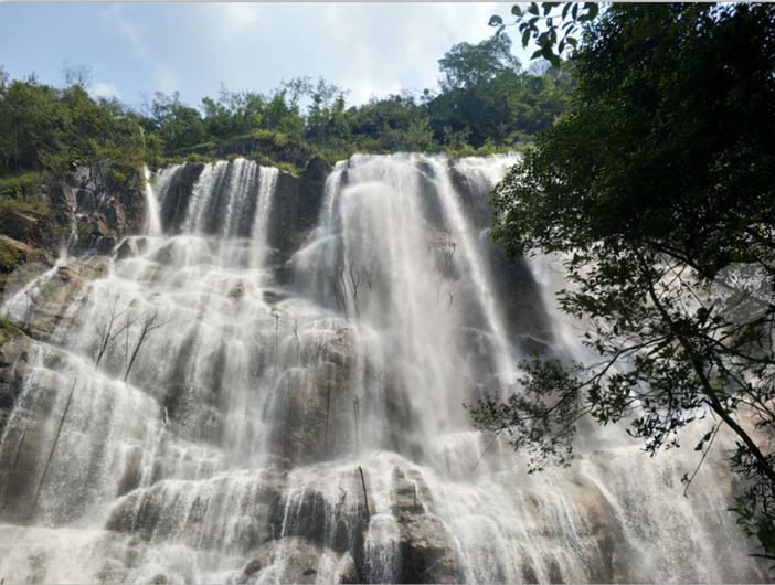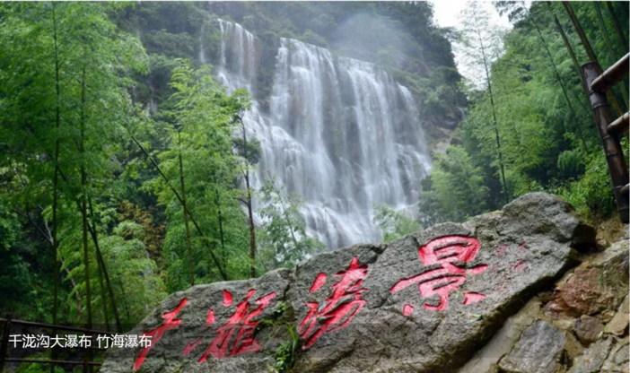 游览【千泷沟大瀑布景区】(门市价68元,团队价45元,费用自理),瀑布目前号称是亚洲最宽的瀑布,远处看着像条条白龙从天而降,所有又名千龙瀑布。此处长期闭塞,民风纯朴,古村内仍保持唐朝流传下来的对父母称呼为“阿哥、阿嫂”的风俗。区纵深约3公里,一路诗情画意。主要景点有仙人脚印、茅坪古村、竹海闻莺、红梨(利)木王、石虎饮潭、小泷石洞、汇泷潭瀑、石锅煮泉、幽谷翠溪、百步云梯、千泷大瀑布等。最壮观的是千泷大瀑布,落差80多米,宽度280多米瀑布成排,飞流直下,响声震谷,水雾迷漫,气势非凡,堪与黄果树瀑布媲美。