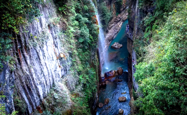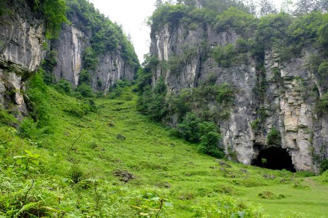 下午游走于峭壁下的鹿饮潭、地缝、鳄鱼潭,亲身体验天坑藏地缝,险崖挂溶洞奇景!