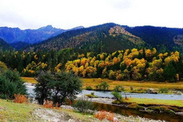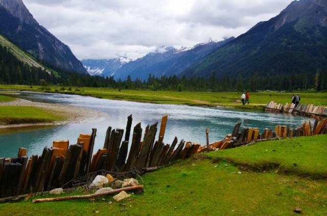 传说中的“隐者之居”、龙王谷!碧蓝的天空,明媚的阳光,洁白的云朵,远处皑皑雪峰,林海苍茫,山坳里碧绿的草甸上的散落着藏寨,小溪,云雾、林海、田畴、牧场、流水、人家、牛羊……颇具林区特色的木篱笆、木板屋、木头桥及农牧民的村寨星罗棋布、错落有致,勾画了一幅恬静、优美的画卷!就是仙居的地方!