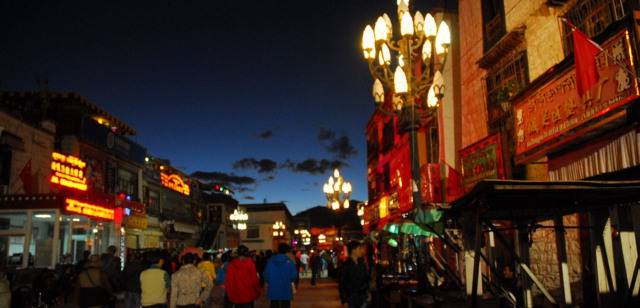 环大昭寺外墙一圈称为 “八廓街”即八角街。便是藏民们行转经仪式的路线。它汇聚着来自各地的朝拜者,在老老的街道,在旧旧的小巷,穿着鲜艳民族服装的藏胞和衣衫褴褛的信徒拥挤在同一条转经道上……
