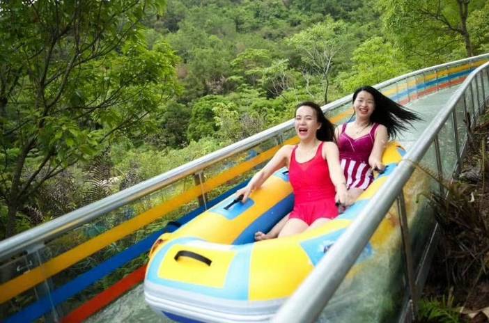 体验中国第一条玻璃滑道漂流,长200多米,上下落差90多米,体验空中漂流,森林漂流,一起挑战吧!(门票包含)