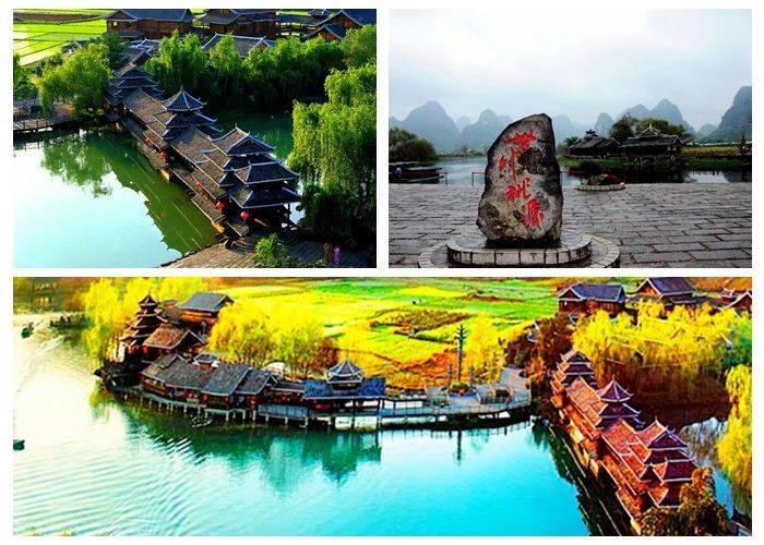 乘车返回桂林市区,途中参观游览被誉为桂林的香格里拉——【世外桃源】(游览约90分钟),这里对于整个行程就是锦上添花,风景如此美妙。诚如《桃花源记》所说“土地平旷,屋舍俨然,有良田美池桑竹之属。阡陌交通,鸡犬相闻”,山水、田园、少数民族交相融合,这里还是CCTV3里由任泉、李冰冰主演的《康美之恋》MV的主要外景取景地,美轮美奂的景色让您在这里流连忘返。
