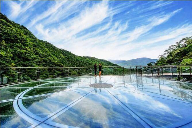 玻璃平台、玻璃栈道、玻璃桥几乎位于同一水平面,漫步其中,平步青云,犹如闲庭散步,俯视下方,却又步步惊心。