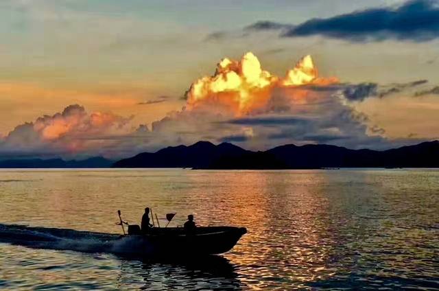 14:30东冲乘船上三门岛(横渡大亚湾,感受快艇的刺激,同时远眺三门岛海关,海中岛屿,这时你可以放声 尖叫,运气好的话,飞鱼将与你在擦肩而过)约20分钟。乘坐快艇期间尽量不要拍照,因为小手一抖,手机就自己游泳去了