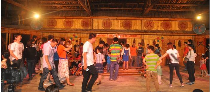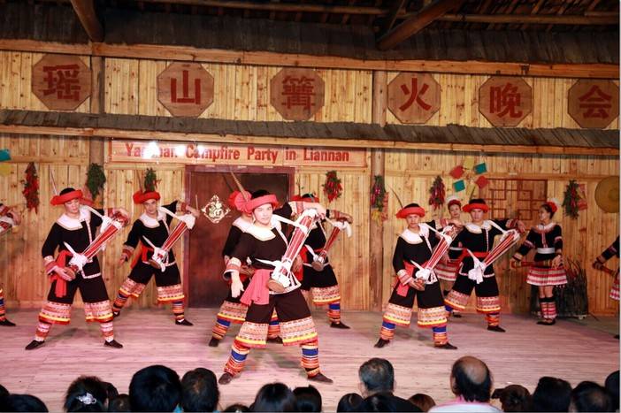 晚餐后还可以参加连南的瑶族篝火晚会,数名漂亮的沙腰妹(即未婚女青年)唱着热情洋溢的瑶歌,几位瑶族阿贵(即男青年)腰挎长鼓,跳起了长鼓舞。大家尽情地与瑶族青年男女载歌载舞,参与竹杆舞、“娶”一个沙腰妹为“妻”等活动(人够,时间来得及才可以哦),然后入住酒店休息