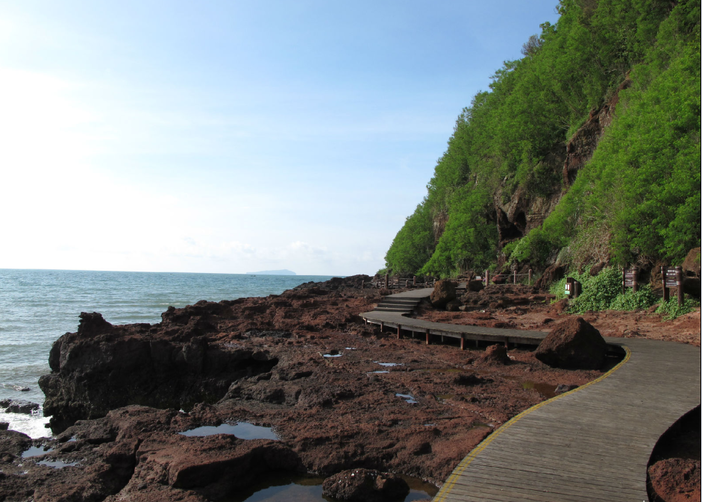 B线:鳄鱼山公园看日出→游火山口遗迹→仙人洞→滴水丹屏→三婆庙→风波岭(下北海地区最陡的山坡)→猪仔岭