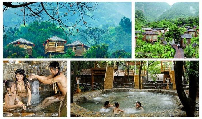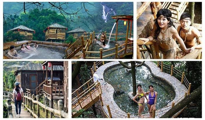 然后浸泡【树上温泉】(夏季则晚上泡温泉),树上温泉在传统温泉养生的概念上,开创性的把丰富的地热资源引到树上,形成独特的树上温泉。共有22个大小温泉池,分设有7个公共池和15个药浴池,特色药浴有野生蜂巢浴、竹芯浴和百花丹浴,药材均选自于本地尧山,蜂巢浴有驱风的特效,竹芯汤有清热毒、预防感冒、凉血解表的作用,百花丹汤则有治疗皮肤瘙痒和健白肌肤之效。。温泉雾浴独创的树上温泉雾浴,与天门沟阔叶森林区的饱氧空气共同形成负离子雾浴场,置身其中,通过呼吸和皮肤毛细血管的张合,不老泉水中的天然小分子团、矿物质和氧气迅速进入到人体细胞的每个角落,令肌肤时刻充盈洁净,具有明显的美颜活血之效。