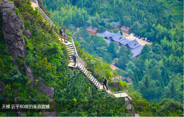 金子山海拔1417米,为广东第八高峰,素有南粤小华山之称,是国家3A景区,金子山位于清远市连山壮族瑶族自治县的国营连山林场省级生态公益林区内,在金子山上千米海拔中,有500米的路程,坡度约有80度游客可沿着悬崖峭壁上的天梯攀援上山顶,几乎是垂直挂在悬崖绝壁上,看着都心惊肉跳,想挑战刺激的不要错过呀!