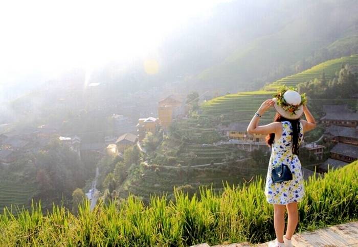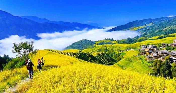 龙脊梯田一年中最美的两个季节:5-6月梯田灌水,赏银色水田;9月底-10月初秋收水稻黄的时候,赏黄金水稻。
