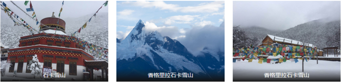 早晨乘车前往游览“香格里拉之心”【石卡雪山】“石卡”是香格里拉藏语译音,意为“有马鹿的山”两只马鹿,代表着正在聆听佛祖讲经说法的芸芸众生马,因此,鹿是藏传佛教吉祥动物之一,表示“吉祥长寿、驱邪正法”石卡雪山景区的自然景观是动态的景观,人们把它归纳为这样一句话:“春看绿草夏看花,秋观秋色冬观雪”高原之春,姗姗来迟,五月份,石卡雪山山顶还是白雪皑皑,山脚坝子却开始变成一块碧绿的地毯,芳草连天,牛羊成群,蓝天、白云、雪山、草甸、藏房、炊烟、牛羊、牧童,大自然的造化,展现在你面前的是一幅“天人合一”的绝妙图案。