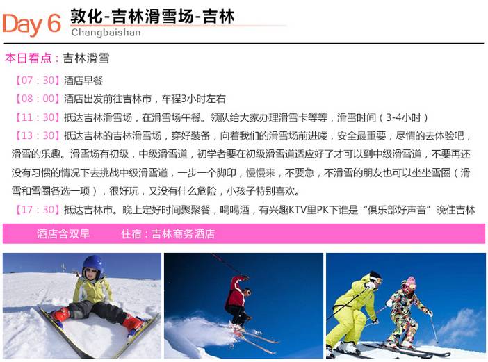 1、住宿:哈尔滨商务酒店、雪谷/雪乡民宿(4人间)、二道白河五星温泉酒店、敦化商务酒店、吉林商务酒店; 2、含餐:全程6个早餐,酒店提供为双早,超过双早部分敬请根据实际价格自理; 3、交通:旅游大巴/商务车。 4、门票:雪谷门票、羊草山门票、雪乡门票、镜泊湖冬捕、长白山门票、吉林滑雪、雾凇岛门票、六丁山门票、二人转表演; 5、保险:旅行社责任险+座位险; |
