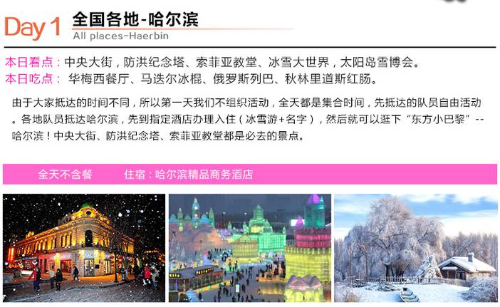 1、行程中列明未含或行程以外活动项目所需的自费项目、酒店内的酒水、洗衣等一切私人开支; 2、景点内园中园门票、旅游意外保险、航空保险; 3、如出现单男或单女,要补单房差。 4、赠送项目如因天气原因和个人原因不能举行,恕不退款。 5、雪杖,雪套免费使用,但因个人原因造成损坏需赔偿。 |