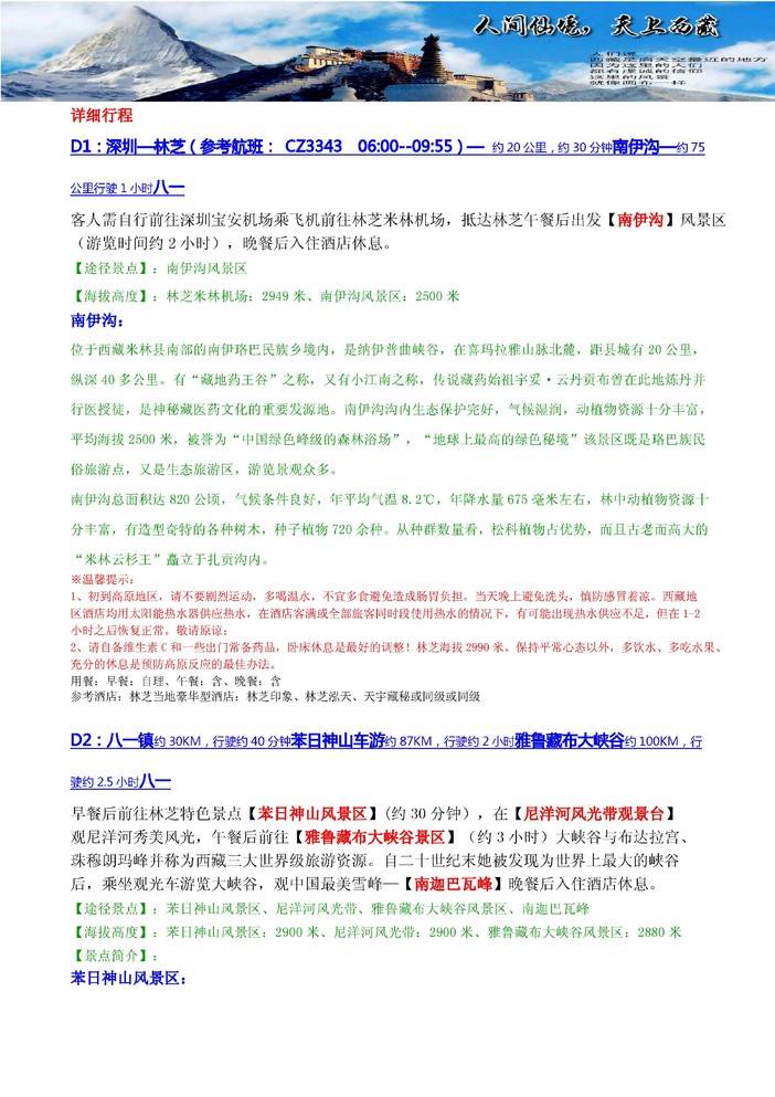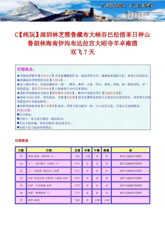 C【纯玩】深圳林芝雅鲁藏布大峡谷巴松措苯日神山鲁朗林海南伊沟布达拉宫大昭寺羊卓雍措双飞7天