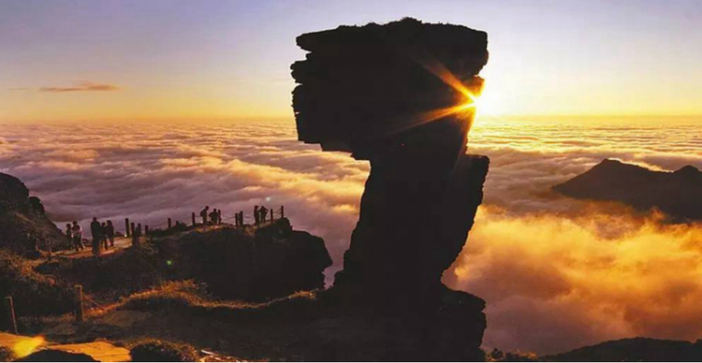 【梵净山】乃“武陵正源,名山之宗”,荣膺“中国十大避暑名山”,梵净山是全国著名的弥勒菩萨道场,中国佛教名山,在佛教史上具有重要的地位。梵净山是“贵州第一名山”,“武陵第一峰”,其最高峰——凤凰山海拔2572米,朝拜地——老金顶2494米,新金顶2336 米。梵净山是云贵高原向湘西丘陵过渡斜坡上的第一高峰,横亘于贵州、重庆、湖南、湖北四省武陵山脉的最高主峰。