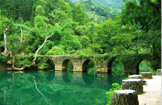 大小七孔:以峡谷瀑布为奇。原始森林和湖泊等自然景观让人心醉神迷。峭壁耸立、危崖层叠,绝壁上附着朵朵钟乳、层层翠林,宛若一幅色彩斑斓的油画。奇峰溶洞、峡谷伏流为主要景观,惊险神奇,气势磅礴,令人激情澎湃。主要景点有大小七孔桥、梦塘、恐怖峡、天生桥、妖风洞、地莪峡、水神河、二层河、笑天河、龙头山、清水塘等。 穿越森林,绚丽多彩的一大片湖面呈现在游人眼前。多彩的湖面反射形成的美景,瞬息多变,百看不厌。