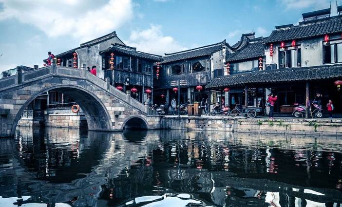 【西栅(zhà)】千年积淀的文化底蕴,成为江南古镇中的佼佼者。西栅用和谐来形容西栅是最确切的。由12座小岛组成,70多座小桥将这些小岛串连在一起,河流密度和石桥数量均为全国古镇之最。通济桥和仁济桥两桥成直角相邻,不管站在哪一座桥边,都可以看到一个桥洞里的另一座桥,故有桥里桥之称。桥里桥是乌镇最美的古桥风景,堪称一绝。当西栅夜幕降临时,喝着小酒,看对岸楼台上唱戏,或者到水边放几盏莲花灯,都会令人心醉。