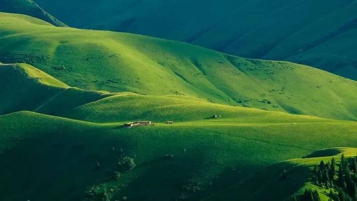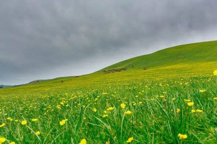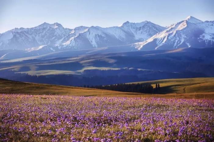 世界上居然还有这么漂亮的草原!海拔2000多米的高山草场视野辽阔,地势高低起伏曲线毕露,远处雪峰林立环绕,天蓝如洗白云如练,脚下绿草成茵繁花似锦,山谷中雪岭云杉忽隐忽现,牛马羊成群在旷野中信步漫游......!